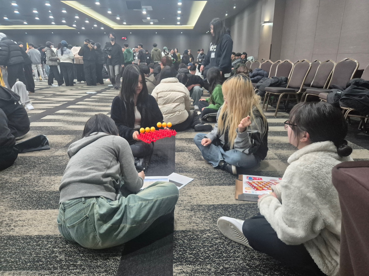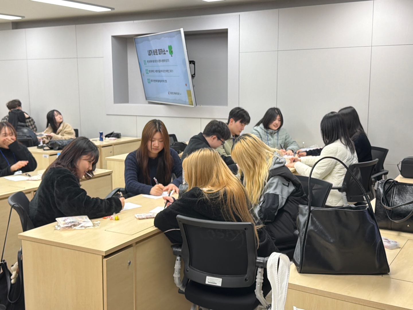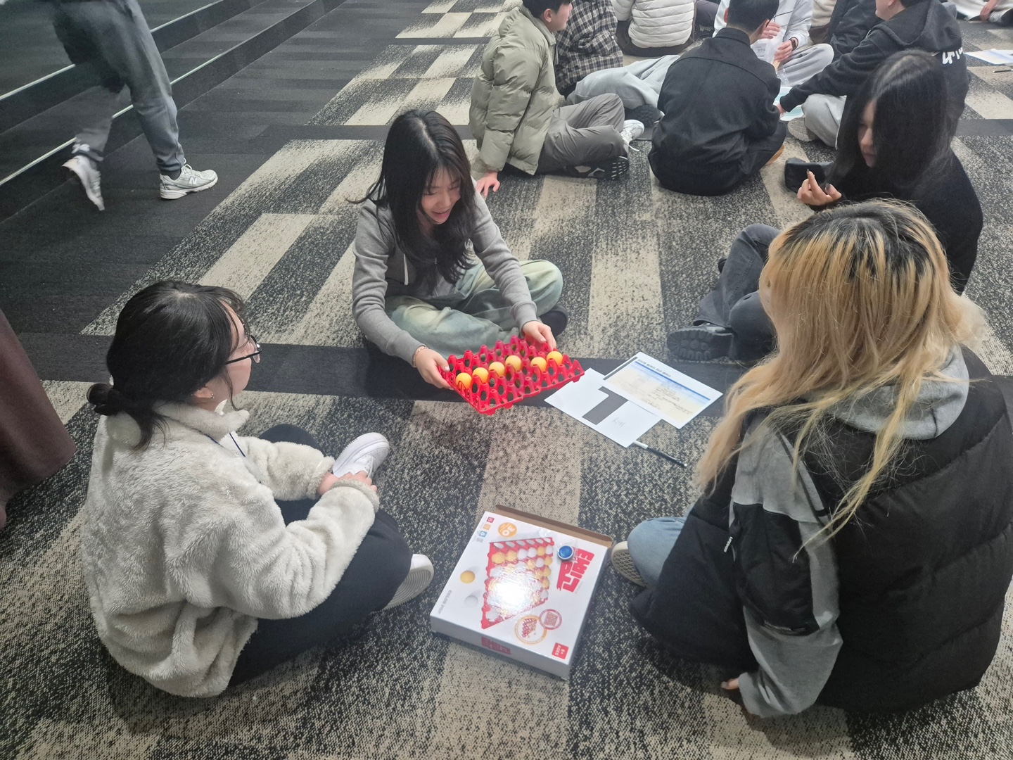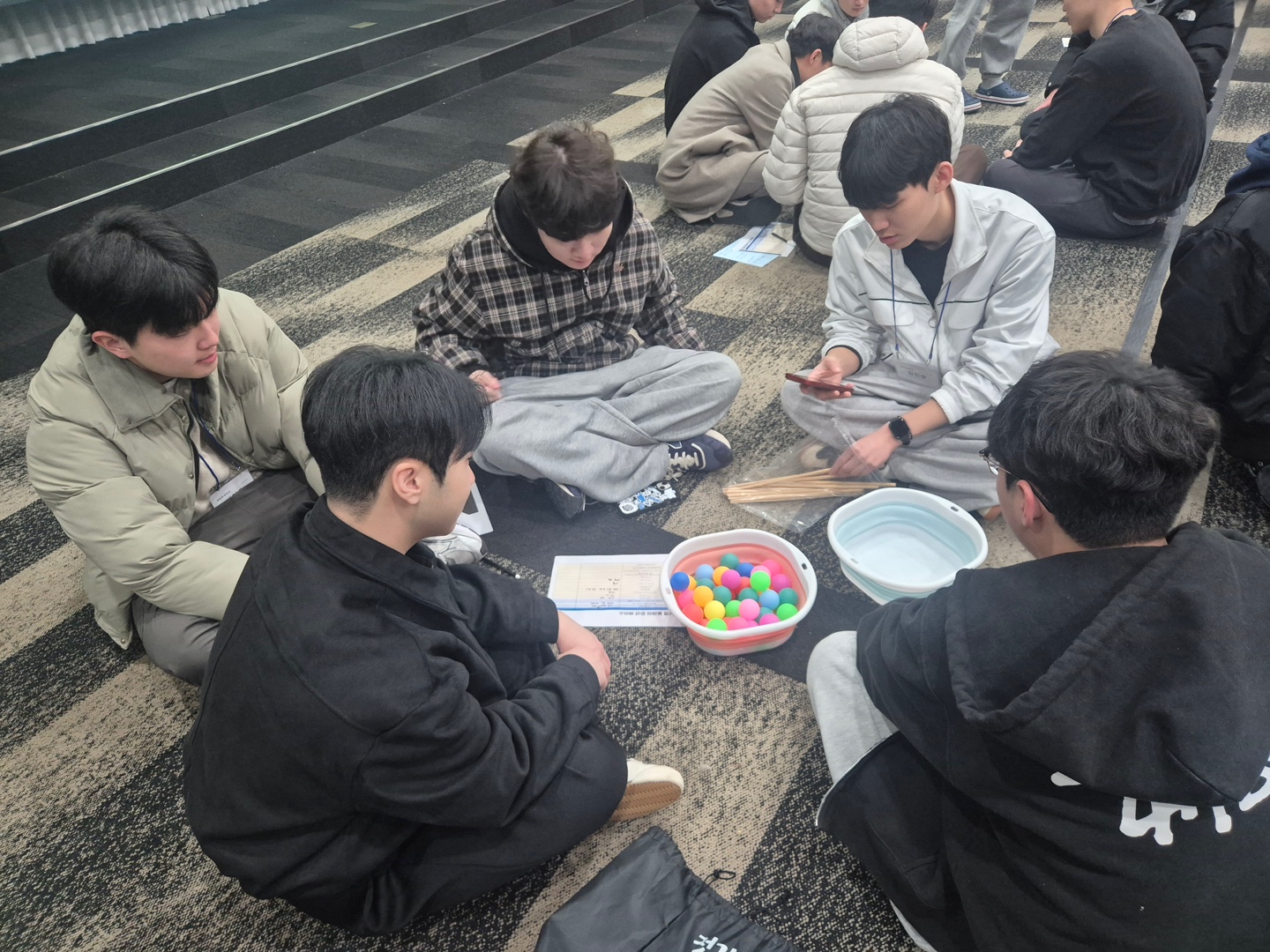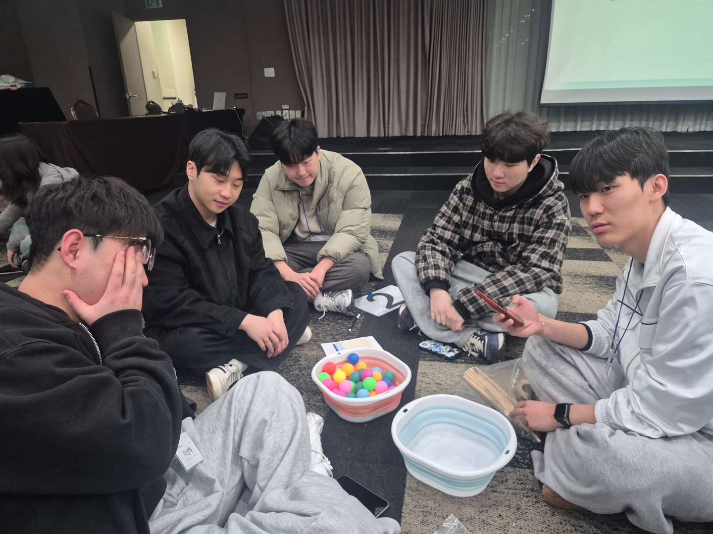 신입생들이 삼삼오오 모여 오리엔테이션 활동을 하고 있네요~