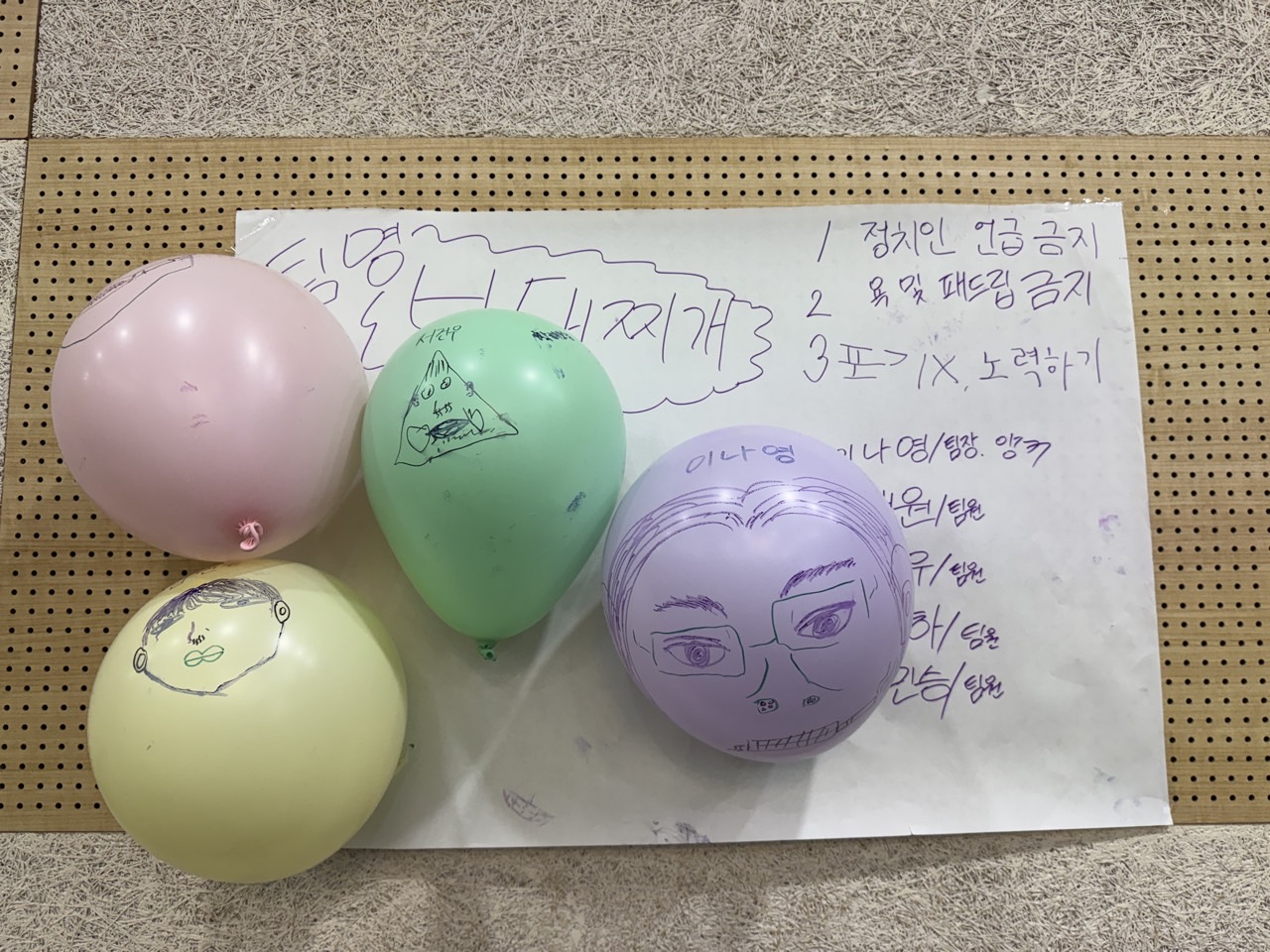 먼저 팀별 규칙과 팀명을 정하고 발표하는 시간을 가졌습니다~