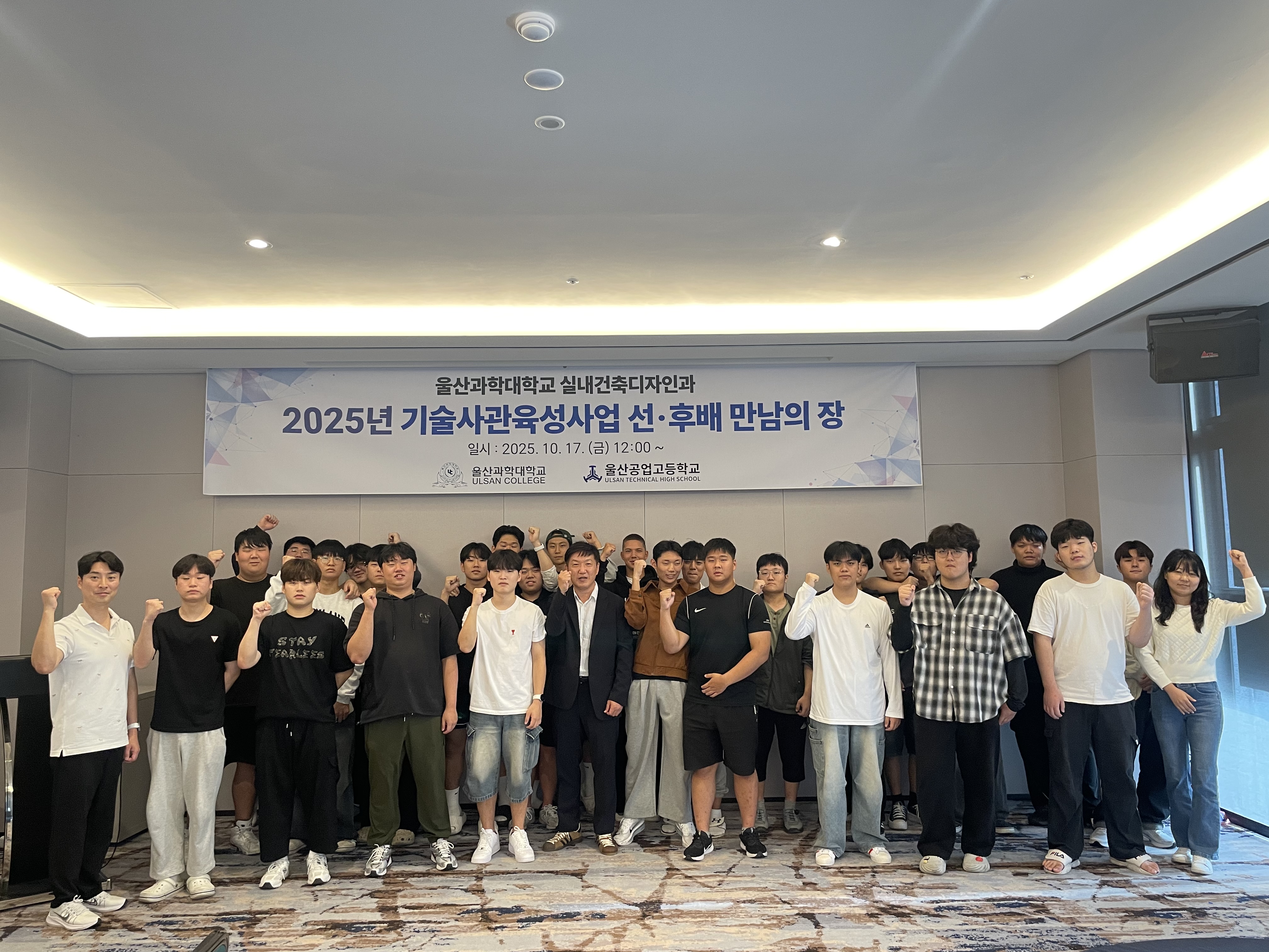 핫이슈 게시판 게시판 학과공지사항 취업공지 갤러리 핫이슈 메인으로 이동 게시판 학과소개 학과자랑 동아리소개 게시판 전공심화과정 인테리어시공학과(성인학습자) 회원서비스 닫기 핫이슈 학과공지사항 취업공지 갤러리 핫이슈 닫기 핫이슈 SNS 목록열기 SNS 목록닫기 FACEBOOK 공유하기 TWITTER 공유하기 BLOG 공유하기 URL주소복사하기 인쇄 총 81개 제목 내용 작성자 검색어를 입력하세요 검색 실내건축디자인과 기술사관육성사업단, ‘선·후배 만남의 장’ 개최 이중혁 2025.10.28 조회수 56 기술사관육성사업에 참여하는 울산공고 학생들 대상으로 ‘협약기업 탐방연수’ 2차 실시 이중혁 2025.10.20 조회수 211 2025년 실내건축디자인과 기술사관육성사업 참여 ‘협약기업 탐방연수’ 실시 이중혁 2025.10.02 조회수 665 실내건축디자인과, 기술사관육성사업으로 ‘대학 방문 교육’ 실시 이중혁 2025.09.08 조회수 765 기술사관육성사업 참여 학생 대상 ‘취업역량 강화캠프’ 실시 이중혁 2025.09.02 조회수 613 2025년 기술사관 육성사업 중소기업 이해연수 이중혁 2025.06.23 조회수 1467 2025년 기술사관 육성사업 고교 설명회 이중혁 2025.06.23 조회수 1278 2025년 실내건축디자인과 산업체 인사초청 특강: 다락건축사사무소 이중혁 2025.06.18 조회수 1444 12345678910
