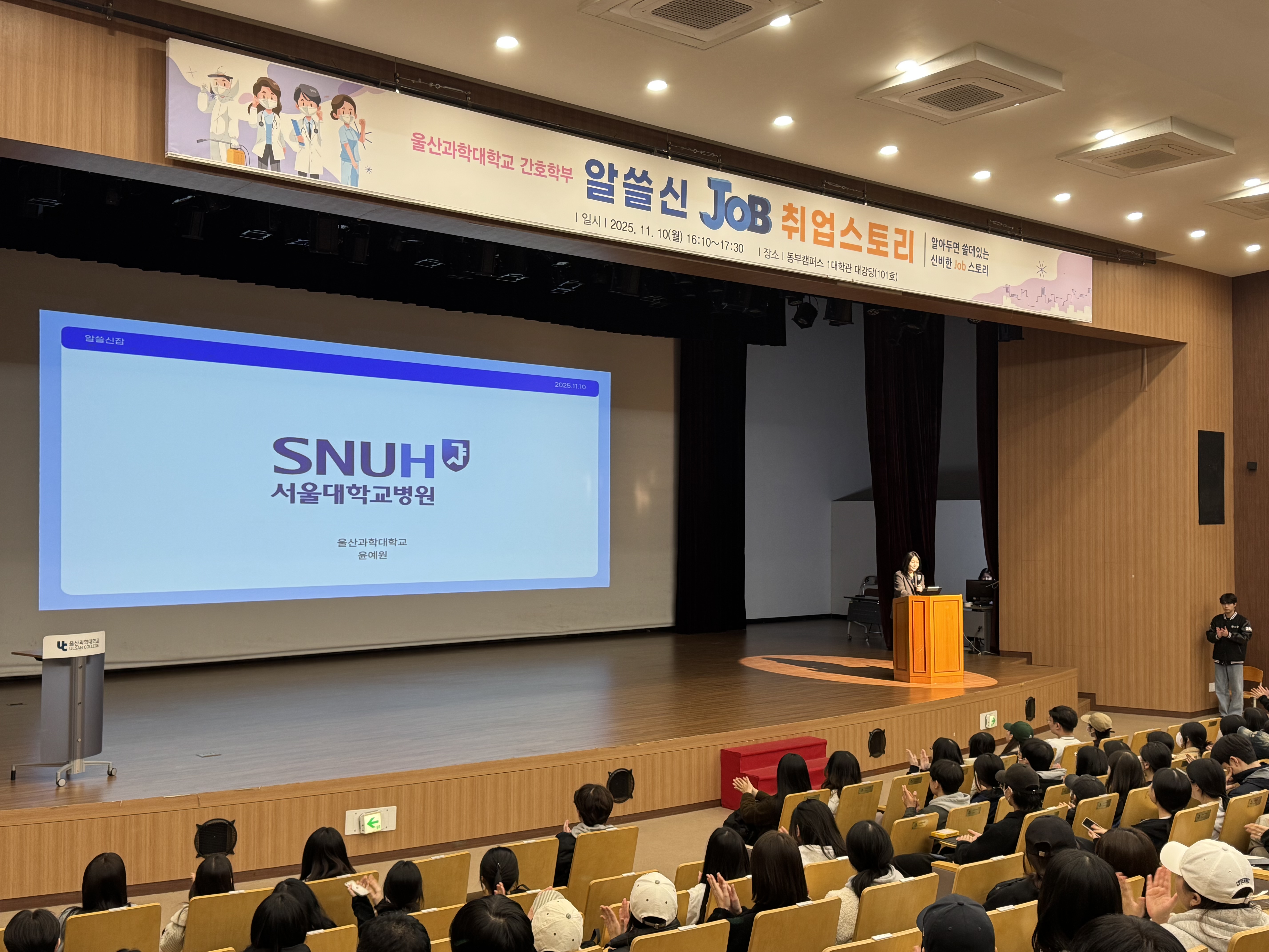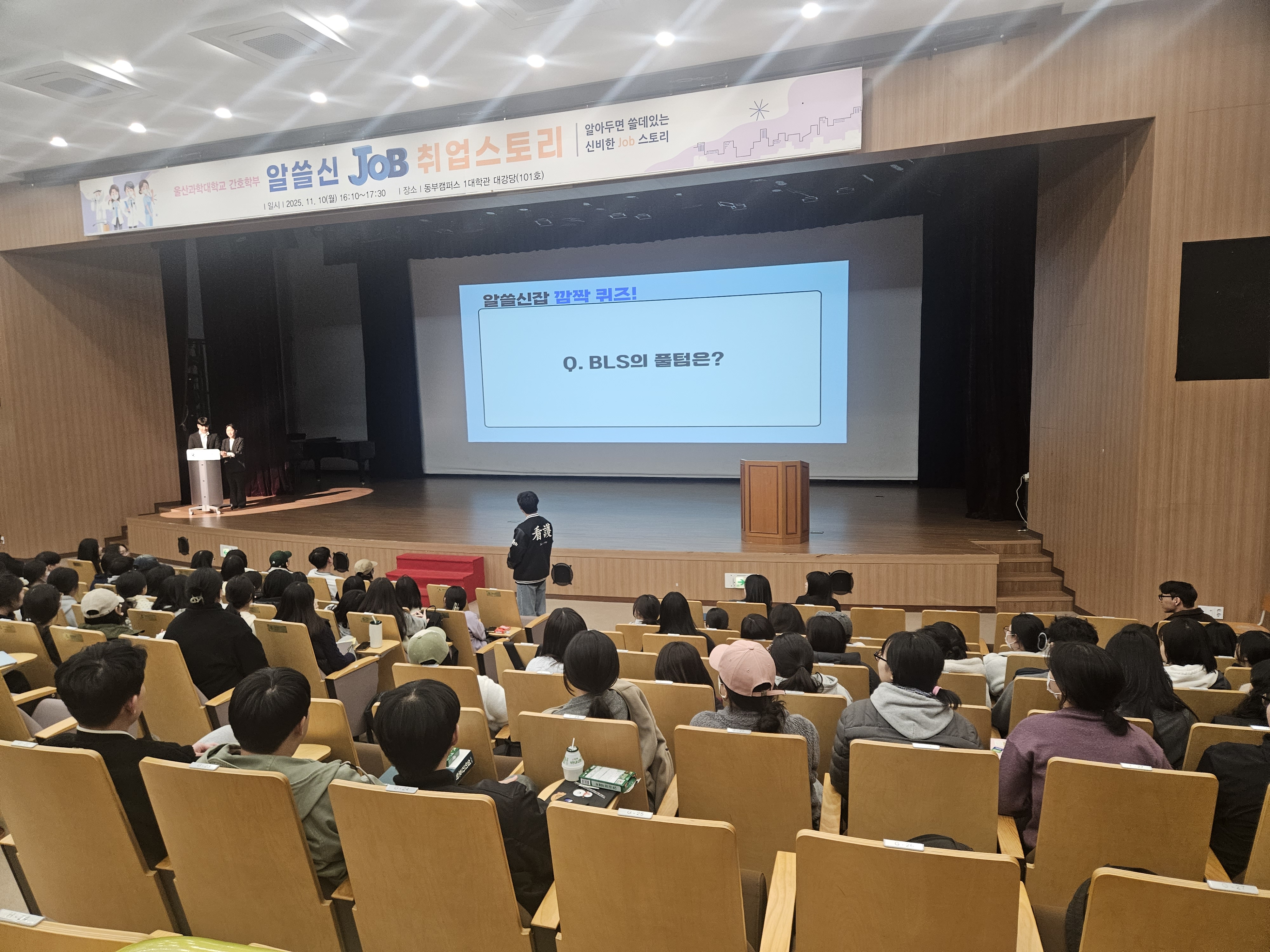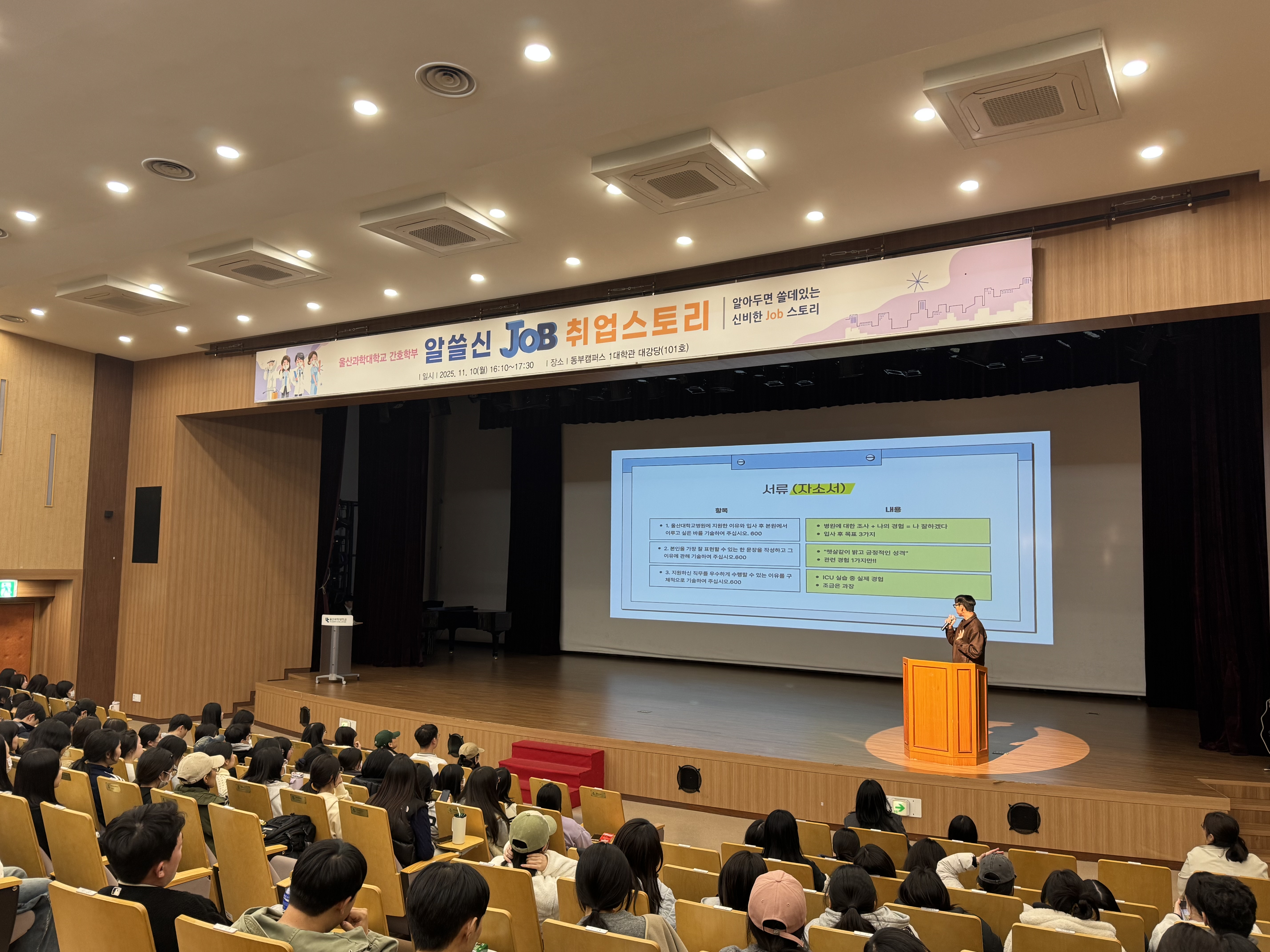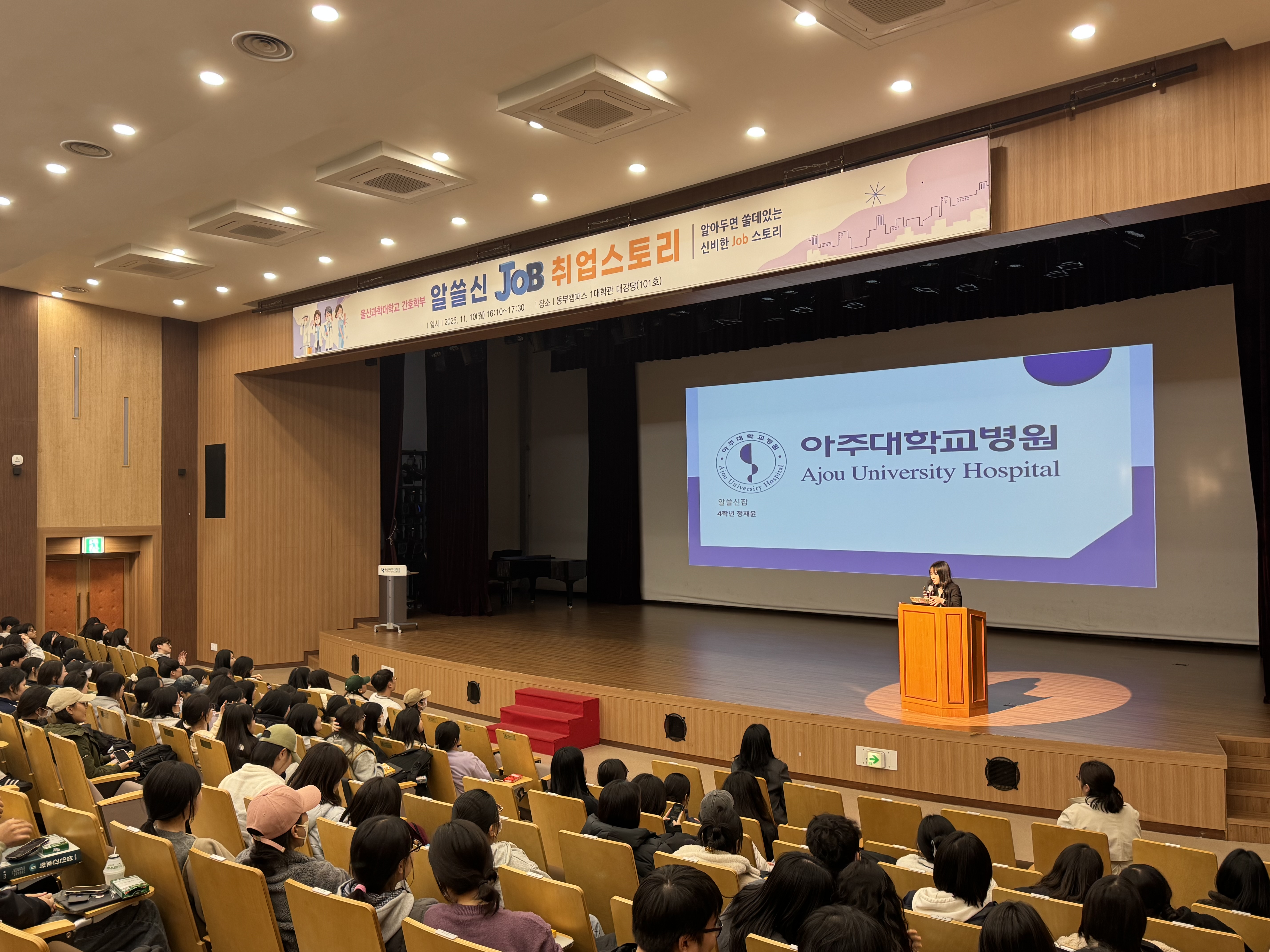 2025년 11월 10(월) 오후 4시 10분부터 1대학관 대강당에서 "간호학부 알쓸신Job 취업스토리」 프로그램을 진행하였습니다.