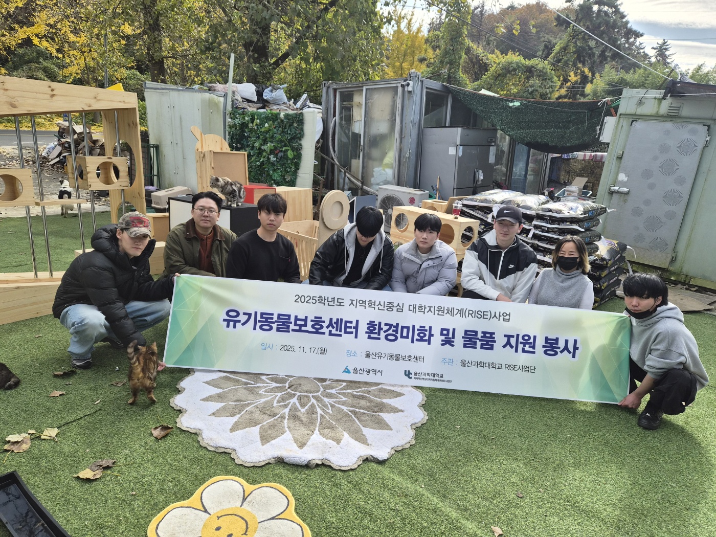 실내건축디자인과 학생들은 교내 실습실에서 보호센터 환경에 특화된 캣타워를 직접 설계하고 제작해 기증했으며, 반려동물보건과는 보호센터의 실제 수요를 파악해 개와 고양이 사료 총 40포(약 700kg)를 포함한 필요 물품을 전달했다. 아울러 교수 2명과 학생 6명으로 구성된 봉사팀은 울산유기동물보호센터에서 동물 돌봄 및 환경미화 봉사도 진행했다.